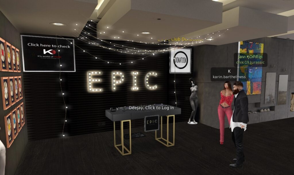 WELCOME IN;)) A new sound spot for music lovers in SL;)…The boss himself a passionated music lover and spinner of tasteful tunes;) wanna serve some handselected djs and their skills and music range at his E P I C Club;)..worth to hear him and this is always a good base for bringing also good vibes in a club;) Dont miss the opeing tomorrow…final dj line up will follow in a few;)..Check it out….as i will do;)..Happy Saturday guys,) K;)