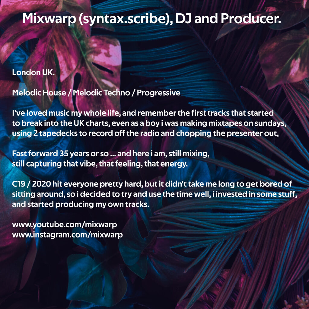 SL DJ inworld name: MIXWARP (syntax.scribe)